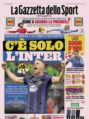 Prime pagine quotidiani sportivi con logo dell'Inter