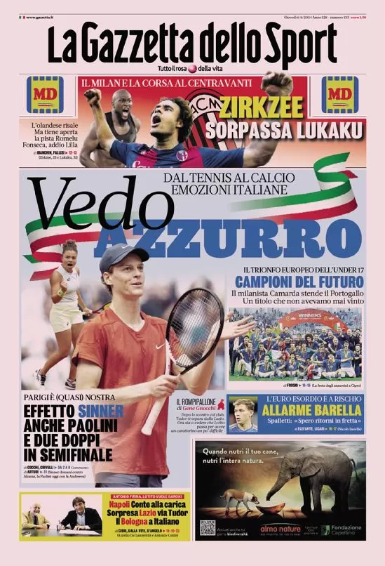 PRIME PAGINE QUOTIDIANI INTER - Di seguito le prime pagine dei maggiori quotidiani sportivi di oggi, giovedì 6 giugno 2024.