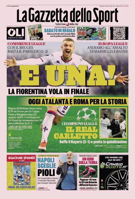 PRIME PAGINE QUOTIDIANI INTER - Di seguito i titoli di oggi sull'Inter e le prime pagine dei maggiori quotidiani sportivi di oggi, giovedì 9 maggio.